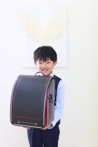 新しいランドセルを持って
