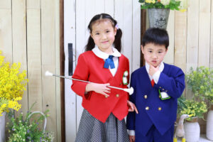 一緒に幼稚園の制服姿も。